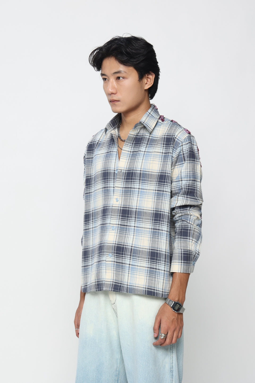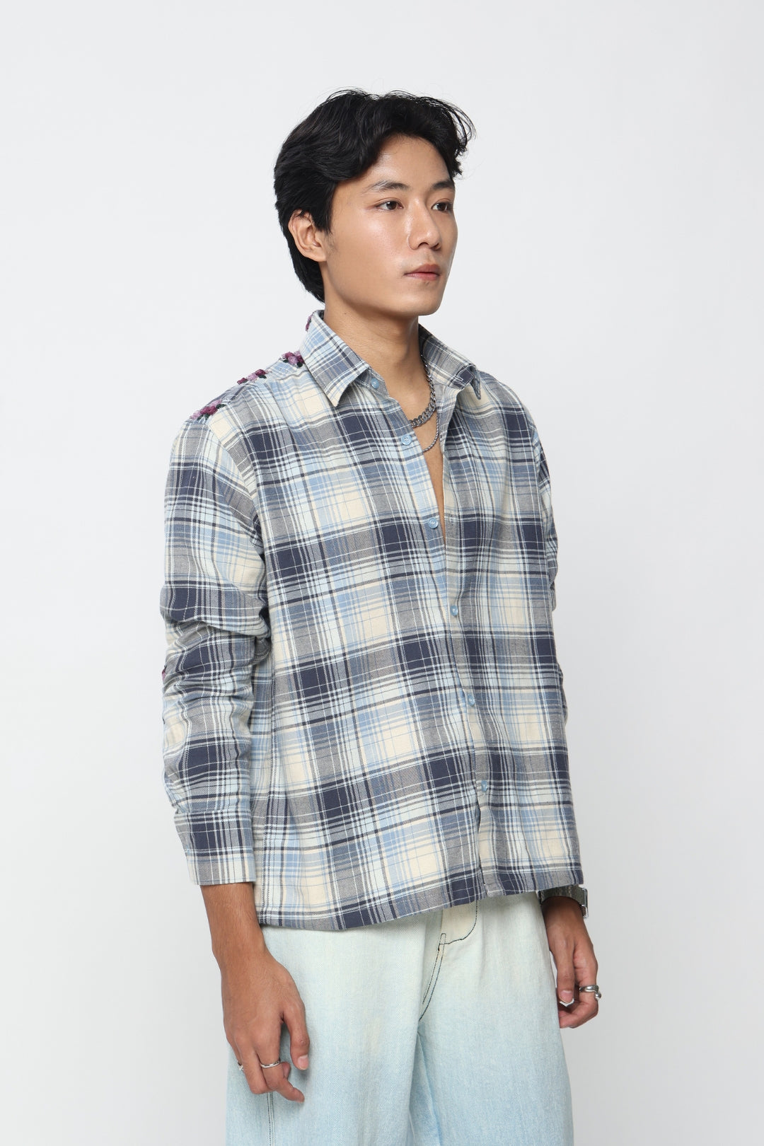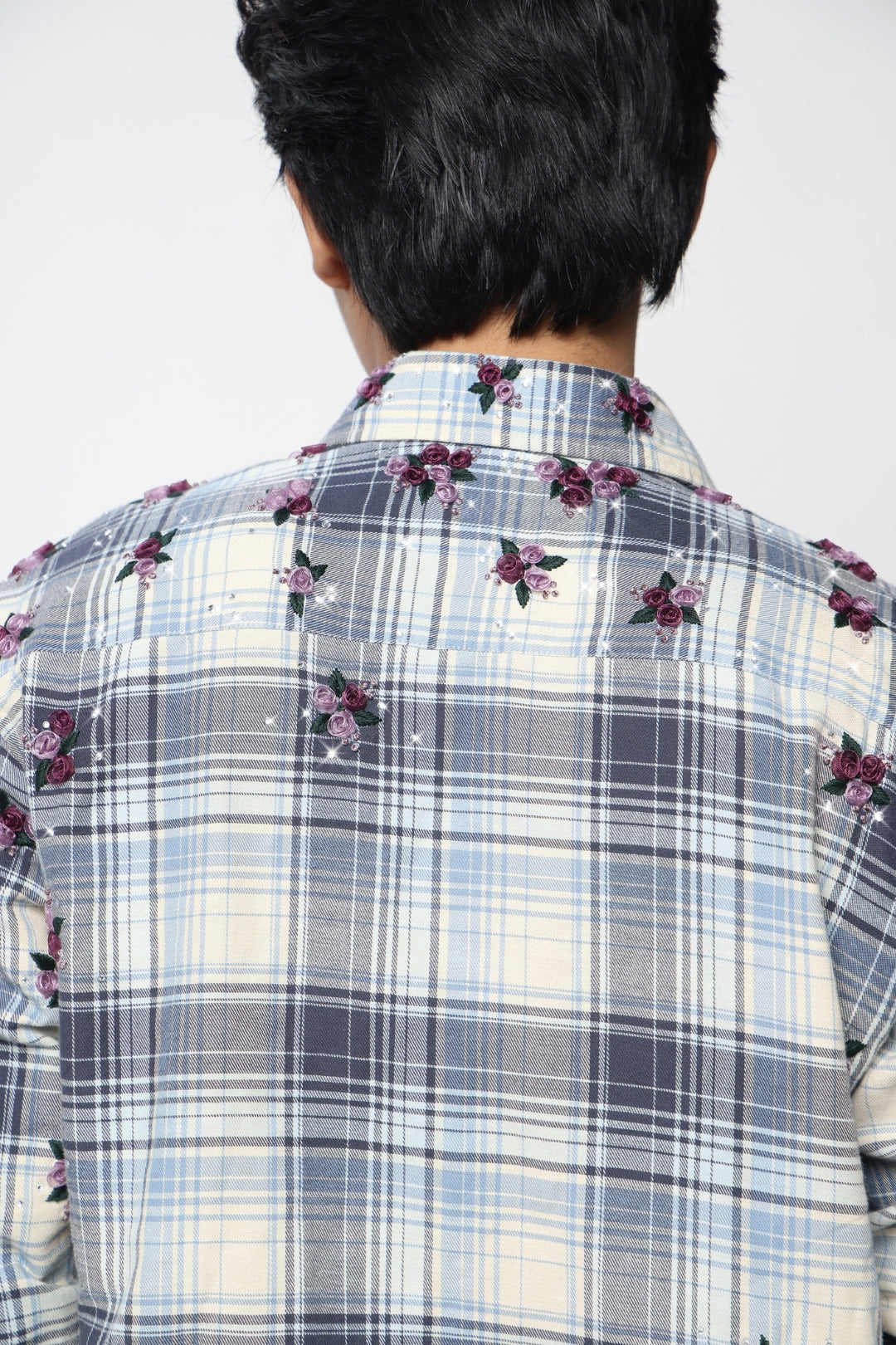 The Roseraie Sky Blue (Ribbon Edition) is detailed with hand-embroidered floral motifs, each thread stitched with quiet precision.