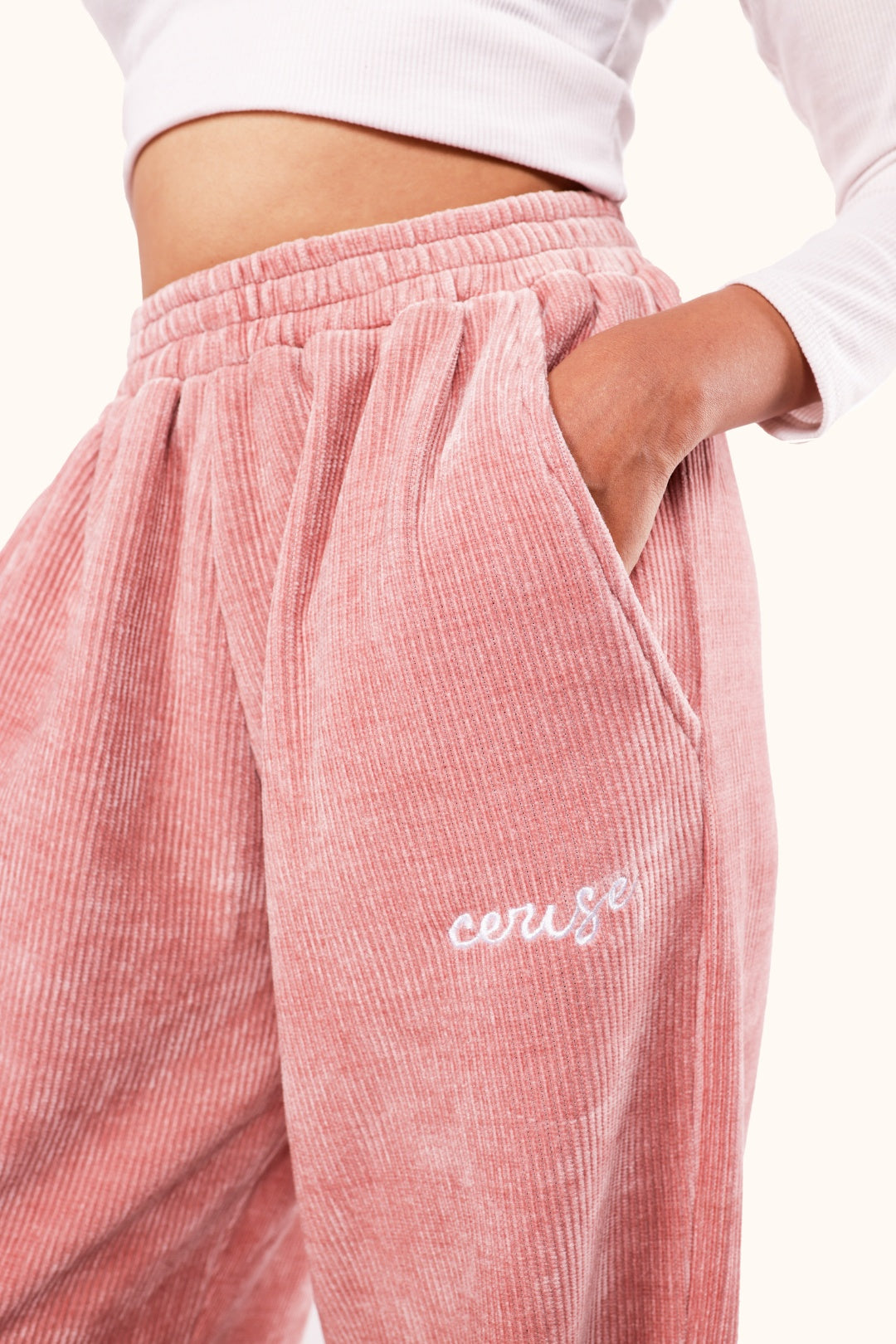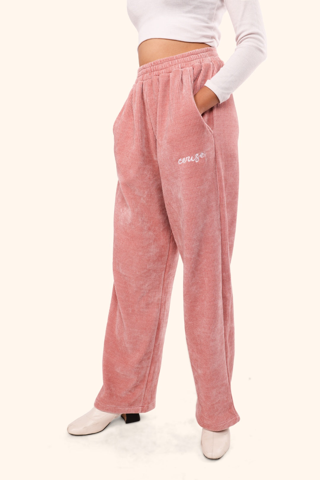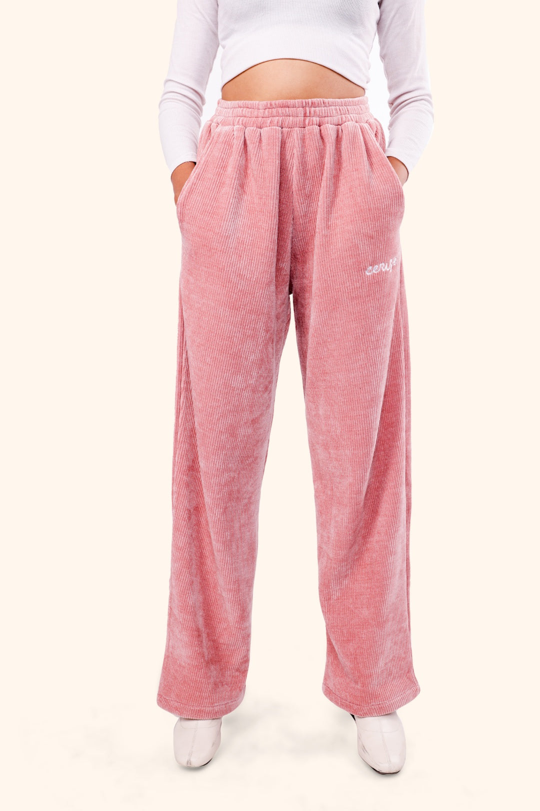 Introducing the CERISE BREEZY CORD PANTS in luxurious pink. Made from the finest corduroy, these pants offer a comfortable and stylish fit. Perfect for any occasion, they add a touch of elegance and sophistication to your wardrobe. Elevate your look and feel confident in these premium pants.